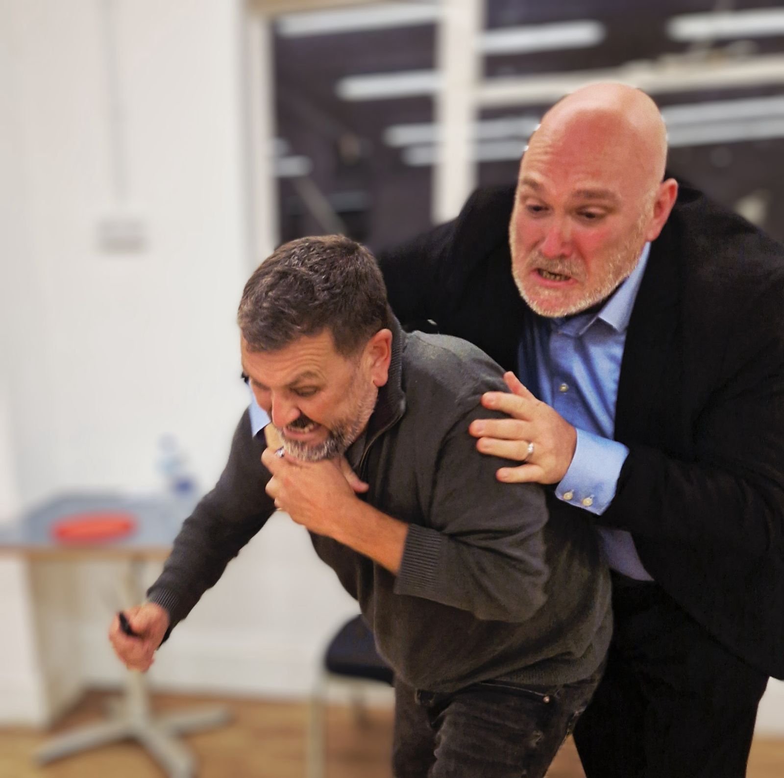 The connection between these three men is revealed as the play goes on, but we want to keep it secret, as there are a couple of twists we hope the audience won’t see coming. The collaborative work we did helped me shape their voices, and it’s been a privilege to work with two brilliant actors who have thrown themselves into creating the roles, even the most unpleasant aspects. Ray, played by Chris Austin, didn’t even have a name at the first rehearsal, but his backstory developed hugely in improvisation. Skip comes from a military background, so he was able to plug into the hypermasculinity Nick demonstrates, a complete 180 from his own personality.