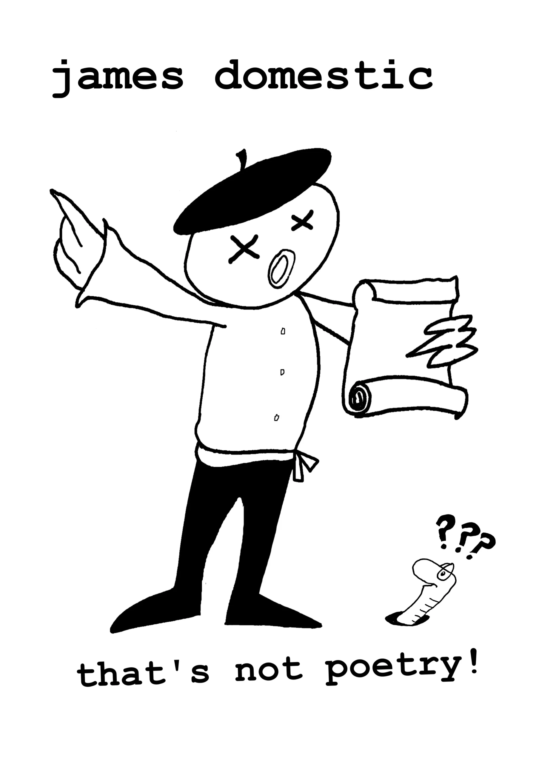 James Domestic skewers expectations of what audiences believe poetry to be, exposes the snobbery around the genre, and has a great time lampooning different styles. Above all, he brings a working-class punk sensibility to the microphone and, occasionally, a poem of real poignancy that makes you think about school, growing up and your past.