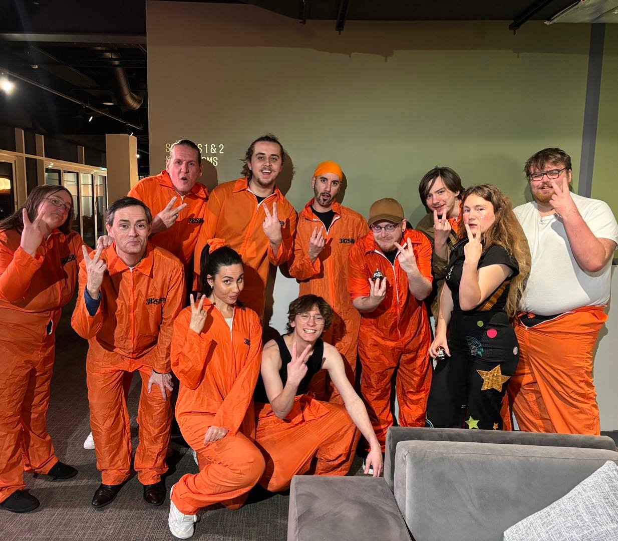Screw Loose Improv is a group of local performers who have been learning this difficult craft for some time and who have had the courage to put on three shows at the Colchester Fringe at the wonderful Dragonfly Lounge. I saw the final performance and, to be honest, it was slightly underwhelming. The concept was good: nine convicts, all dressed in orange boiler suits, take the stand or stage and must improvise for a pardon. The audience is the jury. All fine so far. Eleanor Wilkinson, as the host and prison orderly, was energetic and upbeat, ensuring that the pace of the show didn’t drop. The swift sound effects and speedy musical additions by Richard Bland were spot on. The suggestions from the audience gave ample room for hilarious consequences to ensue – only they didn’t quite happen.