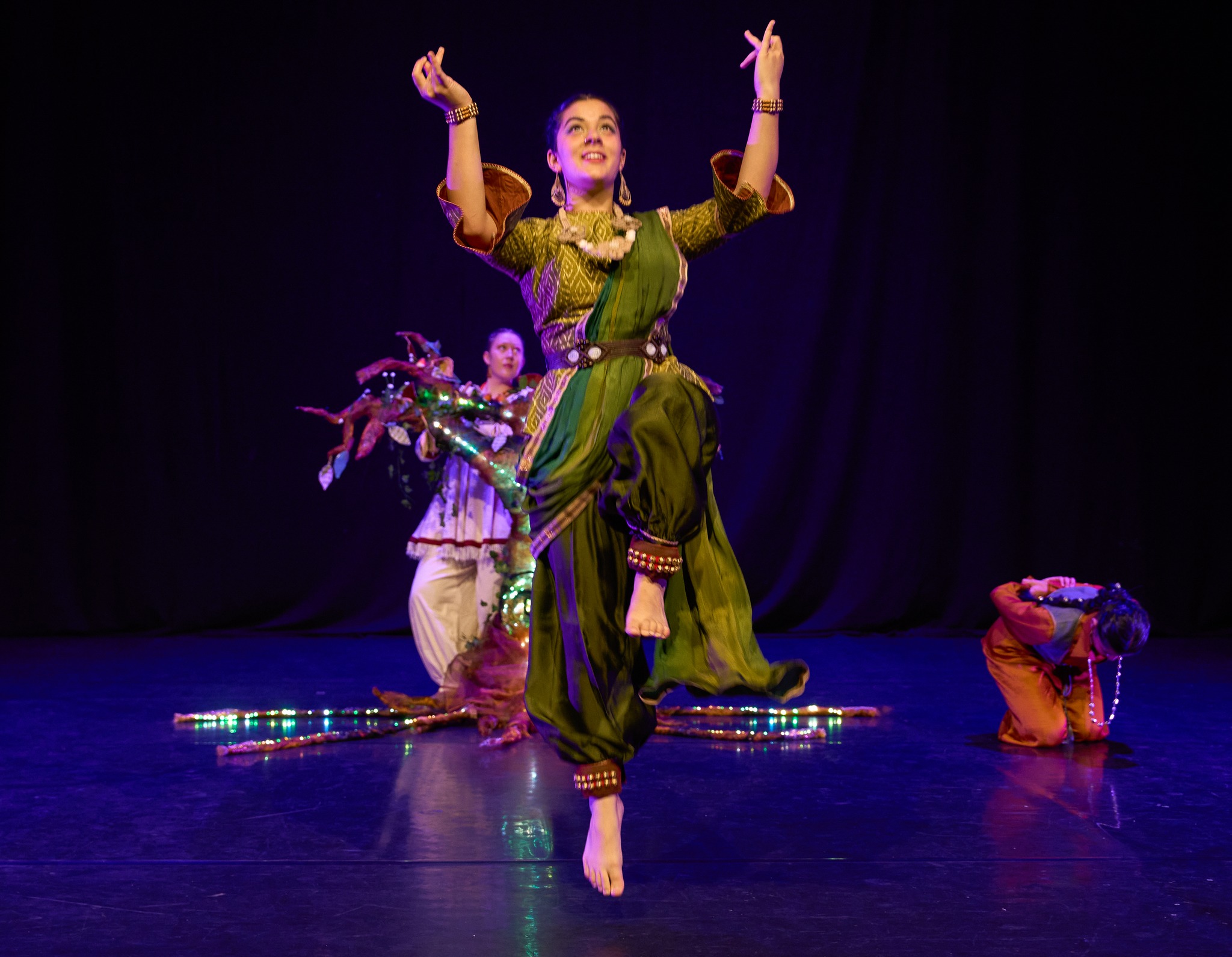 Science and spirituality save the day in this new dance piece from the wonderful Sanskruti Dance Company. Tree of Life, presented at the Mercury Theatre in Colchester, tells the story of Aranyani, the Goddess of forests and the wild, who is dying. If she is to recover and continue to support the plants and animals who depend on her, she needs nourishment and balance in the world. It is down to a spiritual Sage and a Scientist – and the audience – to discover how to save her. Simply yet effectively staged, this gentle and mesmerising piece had the audience, of all ages, enraptured.